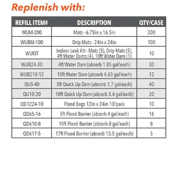 Keep Quick Dam water control supplies organized & accessible - replenish as needed