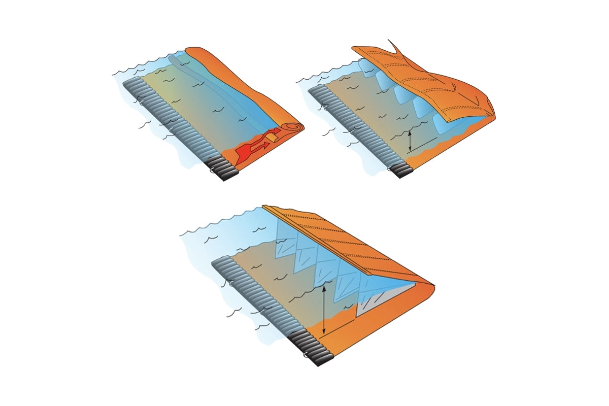 Its operation is simple: unroll, unfold the front of the flap to see the ballast and that's it! The speed or direction of the water doesn’t matter because water pressure opens the barrier. Known to be more effective than sandbags, providing a fast, high-performance emergency solution.